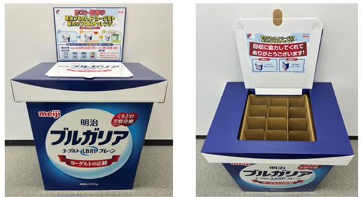 そこで明治とTOPPANは、紙製容器の資源循環を目的に、明治の本社、関西支社、関西工場の3拠点にて「明治ブルガリアヨーグルト」の紙カップ回収実証を2025年5月に行い、効率の良い回収方法などを検証する他、実施後のアンケートにて参加者の環境意識など課題抽出を行いました。