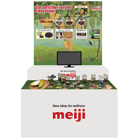 この度展示する「カカオバイオプラスチック」や、「カカオセラミド」に代表されるカカオの未活用部位から新たな価値を生み出す取り組みは、CO2排出量の削減やカカオ農家の収益向上を促し、循環経済の実現や気候変動の課題解決に貢献する当社の重要な使命です。当社はこれからも、「メイジ・カカオ・サポート」に代表されるカカオ産地の支援活動を深化させ、カカオの生産調達にとどまらず、アップサイクル技術による未活用部位の付加価値化を行い、カカオの持続可能性に貢献してまいります。