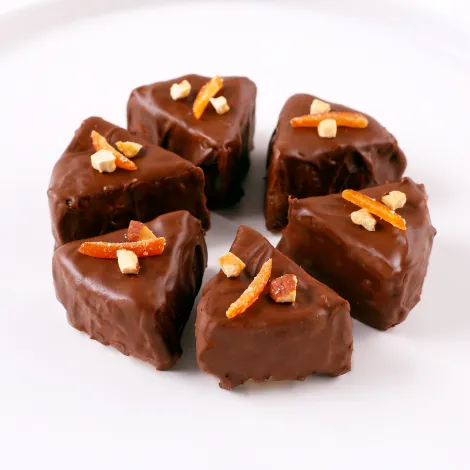 <2>お皿に<1>をハートの形になるようにずらして並べる。