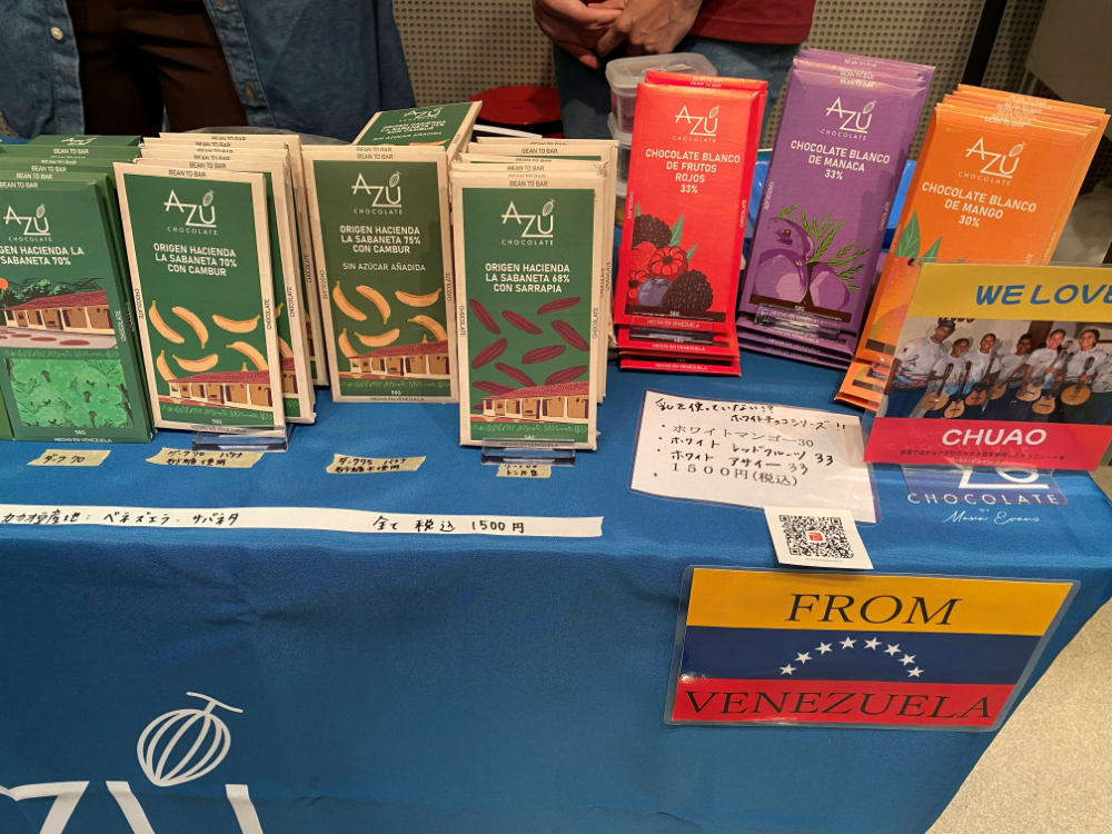 また、カカオ産地との繋がりもTCSらしいトピックスのひとつ。日頃、日本国内では購入できない海外のBean to Barブランドの出店もありました。そのひとつ「AZU CHOCOLATE」は、ベネズエラの産地・チュアオやサバネタなど希少な産地のカカオ豆のタブレットがあり、チョコレートファンからはその風味や品質の高さに対して高評価の声も聞かれました。