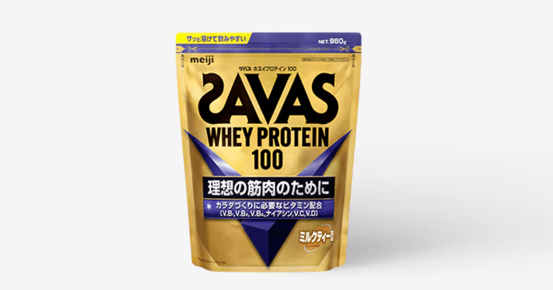 ザバス ホエイプロテイン100 | 詳しく見る | 購入はこちら | 理想の筋肉のために。 溶けやすさを追求した、おいしく飲みやすいプロテイン。 |
